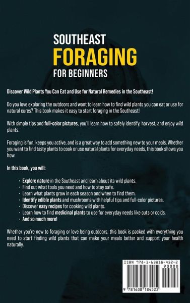 Discover Wild Plants You Can Eat and Use for Natural Remedies in the Southeast! Do you love exploring the outdoors and want to learn how to find wild plants you can eat or use for natural cures? This book makes it easy to start foraging in the Southeast! With simple tips and full-color pictures, you'll learn how to safely identify, harvest, and enjoy wild plants. Foraging is fun, keeps you active, and is a great way to add something new to your meals. Whether you want to find tasty plants to cook or use natural plants for everyday needs, this book shows you how. In this book, you will:Explore nature in the Southeast and learn about its wild plants. Find out what tools you need and how to stay safe. Learn what plants grow in each season and when to find them. Identify edible plants and mushrooms with helpful tips and full-color pictures. Discover easy recipes for cooking wild plants. Learn how to find medicinal plants to use for everyday needs like cuts or colds. And so much more! Whether you're new to foraging or love being outdoors, this book is packed with everything you need to start finding wild plants that can make your meals better and support your health naturally.