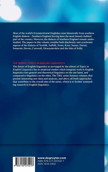 Most of the world's Extraterritorial Englishes stem historically from southern English dialects - Southern England having been the most densely-habited part of the country. However, the dialects of Southern England remain under-studied. The papers in this volume consider both diachronic and synchronic aspects of the dialects of Norfolk, Suffolk, Essex, Kent, Sussex, Dorset, Somerset, Devon, Cornwall, Gloucestershire and the Isles of Scilly.