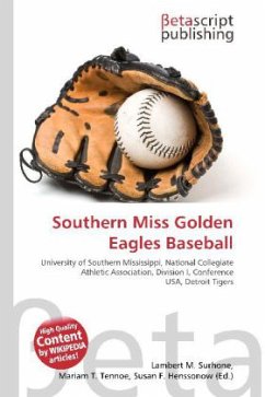Please note that the content of this book primarily consists of articles available from Wikipedia or other free sources online. The Southern Miss Golden Eagles baseball team represents the University of Southern Mississippi in NCAA Division I college baseball. They participate as a member of Conference USA. Southern Miss ranks among the elite in the conference with respect to baseball. The team has been to 7 NCAA Tournaments. The team has managed to produce 16 All-Americans and numerous other all conference players. Southern Miss has had several players in the draft and currently has 4 players on Major League Rosters.