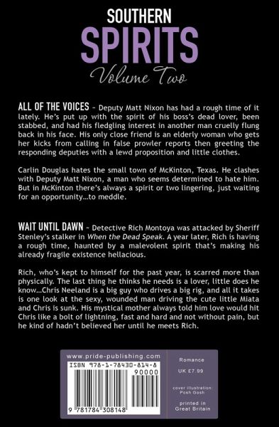 All of the Voices The body might be reluctant, but there's more than one spirit willing to step in and keep two stubborn men from walking away from each other forever... Deputy Matt Nixon has had a rough time of it lately. He's put up with the spirit of his boss's dead lover, been stabbed, and had his fledgling interest in another man cruelly flung back in his face. His only close friend is an elderly woman who gets her kicks from calling in false prowler reports then greeting the responding deputies with a lewd proposition and little clothes. When he finds her dead, Matt grieves for the old woman so many people snickered at-and he fumes at the idea of her snooty nephew from New York who never bothered to visit her. Matt is going to give Carlin Douglas a piece of his mind if he does show up. Carlin Douglas hates the small town of McKinton, Texas. The only other time he'd been there was years ago when Zeke Mathers was almost killed in a gay bashing. Now Carlin has obligations that keep him tied to New York, but he doesn't mind. Until he clashes with Deputy Matt Nixon, a man who seems determined to hate him. But McKinton is a different place, and there's always a spirit or two lingering, just waiting for an opportunity...Or meddle. Wait Until Dawn Beware of what follows you back from the dead... Detective Rich Montoya was attacked by Sheriff Stenley's stalker in When the Dead Speak. A year later, Rich is having a rough time, haunted by a malevolent spirit that's making his already fragile existence hellacious. Rich, who's kept to himself for the past year, is scarred more than physically. The last thing he thinks he needs is a lover, little does he know...Chris Neeland is a big guy who drives a big rig, and all it takes is one look at the sexy, wounded man driving the cute little Miata and Chris is sunk. His mystical mother always told him love would hit Chris like a bolt of lightning, fast and hard and not without pain, but he kind of hadn't believed her until he meets Rich.