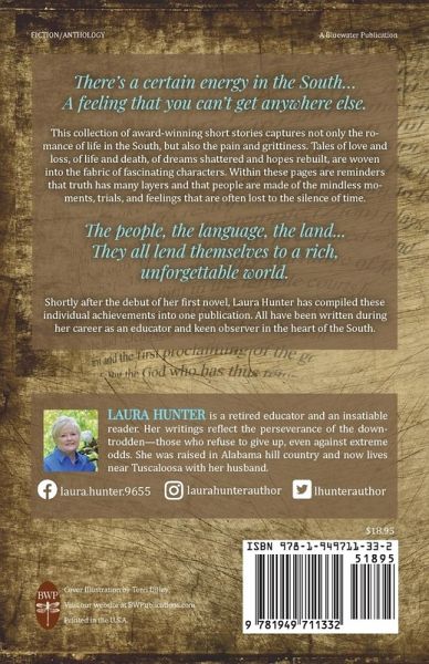 There's a certain energy in the South...that feeling that you can't get anywhere else. The people, the language, the land-they all lend themselves to rich, unforgettable stories. Laura Hunter is a master storyteller who captures not only the romance of life in the South, but also the pain and grittiness. The stories in this collection give glimpses into the lives of fascinating characters-stories of life, death, love, and loss, of dreams shattered and hopes rebuilt. Through it all, Hunter weaves a common thread that remains with the reader long after the book is closed. Containing award-winning stories, such as: ¿ Moon Shadows Dancing - Scott and Zelda Fitzgerald Award ¿ A Widow's Mite - Patricia Boatner Award; Tennessee Mountain Writers ¿ She (Carter's Woman) - H E Francis Award; University of Alabama, Huntsville Campus, Harriet Arnow Award for Short Stories - Appalachian Writers Association ¿ Waiting for the Pink - Hackney Award; Birmingham Southern College