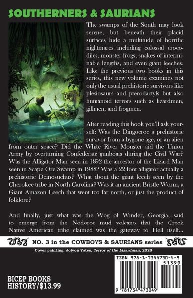 The swamps of the South may look serene, but beneath their placid surfaces hides a multitude of horrific nightmares including colossal crocodiles, monster frogs, snakes of interminable lengths, and even giant leeches. Like the previous two books in this series, this new volume examines not only the usual prehistoric survivors like plesiosaurs and pterodactyls but also humanoid terrors such as lizardmen, gillmen, and frogmen. After reading this book you'll ask yourself: Was the Dingocroc a prehistoric survivor or an alien from outer space? Did the White River Monster aid the Union Army by overturning Confederate gunboats during the Civil War? Was the Alligator Man seen in 1892 the ancestor of the Lizard Man seen in Scape Ore Swamp in 1988? Was a 22 foot alligator actually a prehistoric Deinosuchus? What about the giant leech seen by Cherokee Indians in North Carolina? Was it an ancient Bristle Worm, a Giant Amazon Leech that went too far north, or just the product of folklore? And finally, just what was the Wog of Winder, Georgia, said to emerge from the Nodoroc mud volcano that the Creek Native American tribe claimed was the gateway to Hell itself...