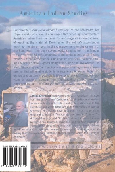 The Author: Conrad Shumaker received his Ph.D. in American literature from the University of California, Los Angeles, and teaches courses in American literature and culture, American Indian literature, and world literature at the University of Central Arkansas. His essays have appeared in such journals as American Literature, The Journal of American Culture, The Arizona Quarterly, and Studies in American Indian Literatures. He has designed, organized, and led four travel seminars, taking students to meet with Pueblo, Hopi, Navajo, and Pima artists, storytellers, healers, farmers, and educators, and allowing them to experience firsthand the landscape where the literature originated.