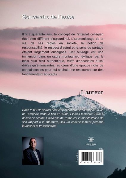 Il y a quarante ans, le concept de l'internat collégien était bien différent d'aujourd'hui. L'apprentissage de la vie, de ses règles en société, la notion de responsabilité, le respect d'autrui et le sens du partage étaient largement enseignés. Cet ouvrage est une immersion dans un cadre montagnard idyllique, par le biais d'un récit authentique, truffé d'anecdotes aussi drôles qu'émouvantes, au coeur d'une époque riche de connaissances pour qui souhaite se ressourcer sur des fondamentaux éducatifs.