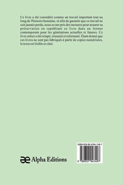 Souvenirs d'une actrice (3/3), est un livre classique et rare, qui a été considéré comme important tout au long de l'histoire de l'humanité, et pour que cet ouvrage ne soit jamais oublié, chez Alpha Editions, nous avons fait des efforts pour sa préservation en rééditant ce livre dans un format moderne pour les générations présentes et futures. . Tout ce livre a été reformaté, retapé et repensé. Ces livres ne sont pas constitués de copies numérisées de leur ¿uvre originale et leur texte est donc clair et lisible. Ce volume remarquable s'inscrit dans les genres de History General and Eastern Hemisphere France, Andorra, Monaco