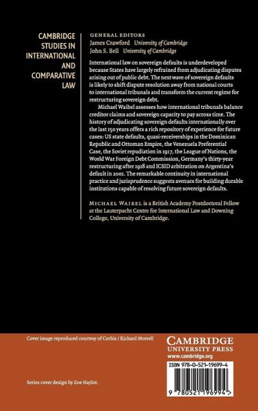 International law on sovereign defaults is underdeveloped because States have largely refrained from adjudicating disputes arising out of public debt. The looming new wave of sovereign defaults is likely to shift dispute resolution away from national courts to international tribunals and transform the current regime for restructuring sovereign debt. Michael Waibel assesses how international tribunals balance creditor claims and sovereign capacity to pay across time. The history of adjudicating sovereign defaults internationally over the last 150 years offers a rich repository of experience for future cases: US state defaults, quasi-receiverships in the Dominican Republic and Ottoman Empire, the Venezuela Preferential Case, the Soviet repudiation in 1917, the League of Nations, the World War Foreign Debt Commission, Germany's 30-year restructuring after 1918 and ICSID arbitration on Argentina's default in 2001. The remarkable continuity in international practice and jurisprudence suggests avenues for building durable institutions capable of resolving future sovereign defaults.