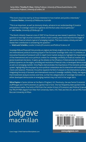 "Sovereign debt crises are relatively rare events, particularly among advanced democracies. In this careful and original study of the pivotal Eurozone crisis, Silvia Pepino shows in detail how domestic and international political factors shape market perceptions of sovereign risk. This book should be read by all those interested in how markets and politics interrelate." - Andrew Walter, University of Melbourne, Australia