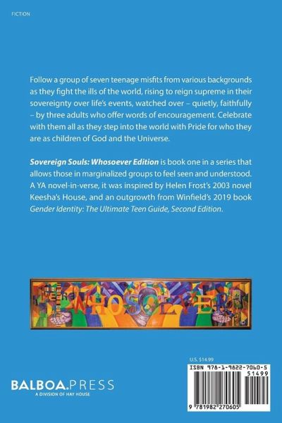 Follow a group of seven teenage misfits from various backgrounds as they fight the ills of the world, rising to reign supreme in their sovereignty over life's events, watched over - quietly, faithfully - by three adults who offer words of encouragement. Celebrate with them all as they step into the world with Pride for who they are as children of God and the Universe. Sovereign Souls: Whosoever Edition is book one in a series that allows those in marginalized groups to feel seen and understood. A YA novel-in-verse, it was inspired by Helen Frost's 2003 novel Keesha's House, and an outgrowth from Winfield's 2019 book Gender Identity: The Ultimate Teen Guide, Second Edition.