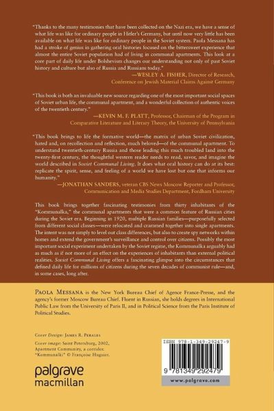 "Thanks to the many testimonies that have been collected on the Nazi era, we have a sense of what life was like for ordinary people in Hitler s Germany, but until now very little has been available on what life was like for ordinary people in the Soviet system. Paola Messana has had a stroke of genius in gathering oral histories focused on the bittersweet experience that almost the entire Soviet population had of living in communal apartments. This look at a core part of daily life under Bolshevism changes our understanding not only of past Soviet history and culture but also of Russia and Russians today." - Wesley A. Fisher, Director of Research, Conference on Jewish Material Claims Against Germany"This book is both an invaluable new source regarding one of the most important social spaces of Soviet urban life, the communal apartment, and a wonderful collection of authentic voices of the twentieth century." - Kevin M. F. Platt, Professor, Chairman of the Program in Comparative Literature and Literary Theory, the University of Pennsylvania"This book brings to life the formative world - the matrix of urban soviet civilization, hated and, on recollection and reflection, much beloved - of the communal apartment. To understand twentieth-century Russia and those leading this much troubled land into the twenty-first century, the thoughtful western reader needs to read, savor, and imagine the world described in Soviet Communal Living. It does what oral history can do at its best:replicate the spirit, sense, and feeling of a world we have lost but one that informs our humanity." - Jonathan Sanders, veteran CBS News Moscow Reporter and Professor, Communication and Media Studies Department, Fordham University