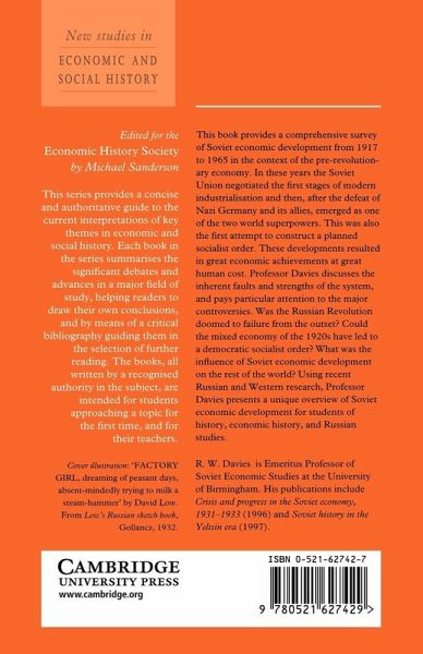 This book provides a comprehensive survey of Soviet economic development from 1917 to 1965 in the context of the pre-revolutionary economy. In these years the Soviet Union negotiated the first stages of modern industrialisation and then, after the defeat of Nazi Germany and its allies, emerged as one of the two world superpowers. This was also the first attempt to construct a planned socialist order. These developments resulted in great economic achievements at great human cost. Using the results of recent Russian and Western research, Professor Davies discusses the inherent faults and strengths of the system, and pays particular attention to the major controversies. Was the Russian Revolution doomed to failure from the outset? Could the mixed economy of the 1920s have led to a democratic socialist economy? What was the influence of Soviet economic development on the rest of the world?