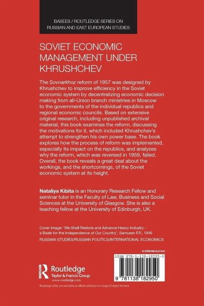 The Sovnarkhoz Reform of 1957 was designed by Khrushchev to improve efficiency in the Soviet economic system by decentralising economic decision making from all-Union branch ministries in Moscow to the governments of the individual republics and regional economic councils. Based on extensive original research, including unpublished archival material, this book examines the reform, discussing the motivations for it, which included Khrushchev's attempt to strengthen his own power base. The book explores how the process of reform was implemented, especially its impact on the republics, and analyses why the reform, which was reversed in 1959, failed. Overall, the book reveals a great deal about the workings, and the shortcomings, of the Soviet economic system at its height.