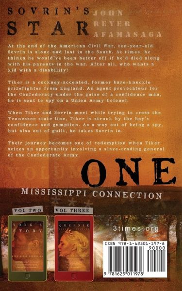 At the end of the American Civil War, ten-year-old Sovrin is alone and lost in the South. At times, he thinks he would've been better off if he'd died along with his parents in the war. After all, who wants a kid with a disability? Tiker is a cockney-accented, former bare-knuckle prizefighter from England. An agent provocateur for the Confederacy under the guise of a confidence man, he is sent to spy on a Union Army Colonel. When Tiker and Sovrin meet while trying to cross the Tennessee state line, Tiker is struck by the boy's confidence and gumption. As a way out of being a spy, but also out of guilt, he takes Sovrin in. Their journey becomes one of redemption when Tiker seizes an opportunity involving a slave-trading general of the Confederate Army. Historical American Civil War Fiction