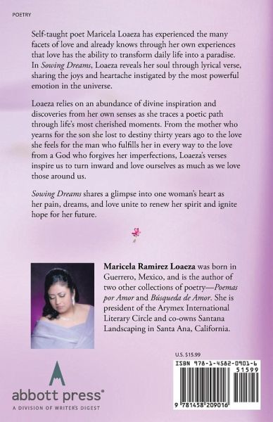 Self-taught poet Maricela Loaeza has experienced the many facets of love and already knows through her own experiences that love has the ability to transform daily life into a paradise. In Sowing Dreams, Loaeza reveals her soul through lyrical verse, sharing the joys and heartache instigated by the most powerful emotion in the universe. Loaeza relies on an abundance of divine inspiration and discoveries from her own senses as she traces a poetic path through life's most cherished moments. From the mother who yearns for the son she lost to destiny thirty years ago to the love she feels for the man who fulfills her in every way to the love from a God who forgives her imperfections, Loaeza's verses inspire us to turn inward and love ourselves as much as we love those around us. Sowing Dreams shares a glimpse into one woman's heart as her pain, dreams, and love unite to renew her spirit and ignite hope for her future.