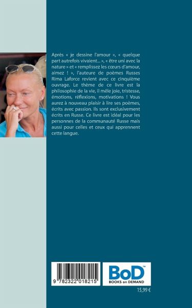Après "je dessine l'amour", "quelque part autrefois vivaient...", "être uni avec la nature" et "remplissez les coeurs de l'amour, aimez!", l'auteure de poèmes Russes Rima Laforce revient avec ce cinquième ouvrage. Le thème de ce livre est la philosophie de la vie, il mêle joie, tristesse, émotions, réflexions et motivation!
