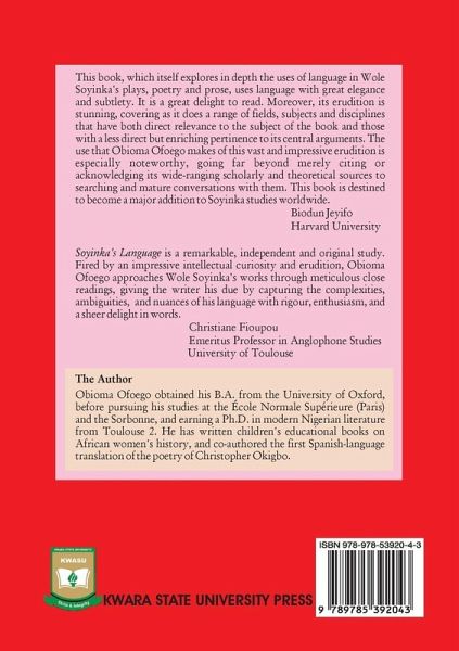 This book explores in depth the uses of language in Wole Soyinka’s plays, poetry and prose. The author approaches Soyinka’s works through meticulous close readings, giving the writer his due by capturing the complexities, ambiguities, and nuances of his language.