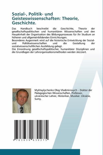 Das Handbuch beschreibt die Geschichte, Theorie der gesellschaftspolitischen und humanitären Wissenschaften und den Hauptinhalt der Organisation des Bildungsprozesses für ihr Studium an höheren und allgemeinbildenden Einrichtungen.Besonderes Augenmerk wird auf die historische Entwicklung der Sozial- und Politikwissenschaften und die Gestaltung der sozialwissenschaftlichen Ausbildung gelegt.Die Einordnung gesellschaftspolitischer, humanitärer Disziplinen und die Grundlagen der Lehrorganisationsmethoden werden skizziert.