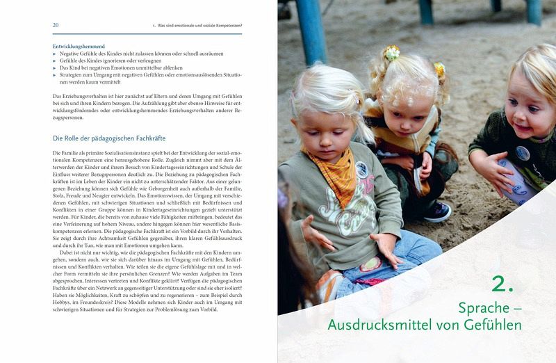 Wie können pädagogische Fachkräfte in Krippe und Kita die Kinder darin unterstützen, ihren Platz in der Gruppe zu finden und sich zu selbstbewussten und sozial kompetenten Persönlichkeiten zu entwickeln? Und wie können sie bei dieser Aufgabe mit den Eltern Hand in Hand arbeiten? Mit Beispielen aus dem Gruppenalltag beleuchtet das Buch die zentralen Themen der sozial-emotionalen Entwicklung von Kindern zwischen 2 und 6 Jahren. Es bietet konkrete Hilfen für den Umgang mit Konfl ikten und vielfältige Anregungen, wie die sozial-emotionalen Kompetenzen der Kinder altersgerecht und individuell gefördert werden können.