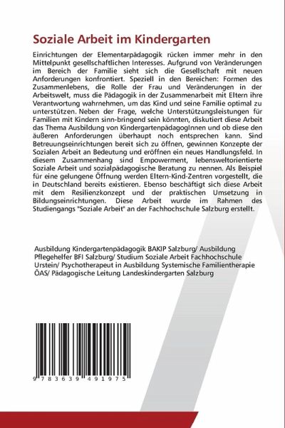 Einrichtungen der Elementarpädagogik rücken immer mehr in den Mittelpunkt gesellschaftlichen Interesses. Aufgrund von Veränderungen im Bereich der Familie sieht sich die Gesellschaft mit neuen Anforderungen konfrontiert. Speziell in den Bereichen: Formen des Zusammenlebens, die Rolle der Frau und Veränderungen in der Arbeitswelt, muss die Pädagogik in der Zusammenarbeit mit Eltern ihre Verantwortung wahrnehmen, um das Kind und seine Familie optimal zu unterstützen. Neben der Frage, welche Unterstützungsleistungen für Familien mit Kindern sinn-bringend sein könnten, diskutiert diese Arbeit das Thema Ausbildung von KindergartenpädagogInnen und ob diese den äußeren Anforderungen überhaupt noch entsprechen kann. Sind Betreuungseinrichtungen bereit sich zu öffnen, gewinnen Konzepte der Sozialen Arbeit an Bedeutung und eröffnen ein neues Handlungsfeld. In diesem Zusammenhang sind Empowerment, lebensweltorientierte Soziale Arbeit und sozialpädagogische Beratung zu nennen. Als Beispiel für eine gelungene Öffnung werden Eltern-Kind-Zentren vorgestellt, die in Deutschland bereits existieren. Ebenso beschäftigt sich diese Arbeit mit dem Resilienzkonzept und der praktischen Umsetzung in Bildungseinrichtungen. Diese Arbeit wurde im Rahmen des Studiengangs "Soziale Arbeit" an der Fachhochschule Salzburg erstellt.
