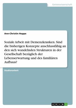 Studienarbeit aus dem Jahr 2022 im Fachbereich Soziale Arbeit / Sozialarbeit, Note: 1,0, Hochschule Fresenius; Köln, Sprache: Deutsch, Abstract: Die folgende Ausarbeitung beschäftigt sich mit der Frage ¿Sind die bisherigen Konzepte zur Arbeit mit demenziell Erkrankten und ihren Angehörigen anschlussfähig an den sich wandelnden Strukturen in der Gesellschaft bezüglich der Lebenserwartung und des familiären Aufbaus?". Dabei ist das Ziel, die Konzepte der Sozialen Arbeit für die Arbeit mit demenziell Erkrankten und ihren Angehörigen hinsichtlich der sich wandelnden Strukturen der Gesellschaft auf ihre Passfähigkeit zu überprüfen. Zuerst wird dafür die Demenz definiert und ihre Auswirkung auf den Menschen erklärt. Hierfür wird die Gesellschaft hinsichtlich der steigenden Lebenserwartung, den sich wandelnden familiären Strukturen und den Schattenseiten der Digitalisierung beschrieben. Als Konzepte der Sozialen Arbeit wird das Case-Management und das Lebensweltorientierte Arbeiten verwendet. Im Anschluss daran wird analysiert inwiefern die Wandlungen mit den Konzepten übereinstimmen. Zentrale Ergebnisse der Hausarbeit sind, dass die Konzepte die Möglichkeit bieten die Familie und den Betroffenen bei einer demenziellen Erkrankung optimal zu unterstützen und zu entlasten, jedoch treffen sie auf ihre Grenzen, wenn es um die Prävention der Krankheit geht. Hierbei zeigt sich, dass SozialarbeiterInnen mehr in frühzeitige Prävention investieren müssen und gleichzeitig eine Aufklärung über die Ursachen und Schulungen für den generellen Umgang mit Demenz anbieten müssen.