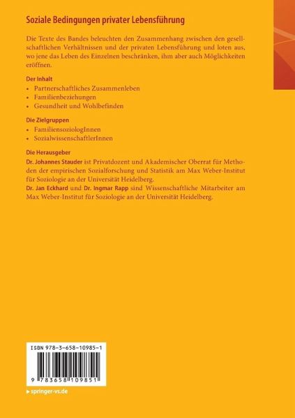 Dr. Johannes Stauder ist Privatdozent und Akademischer Oberrat für Methoden der empirischen Sozialforschung und Statistik am Max Weber-Institut für Soziologie an der Universität Heidelberg. Dr. Jan Eckard und Dr. Ingmar Rapp sind Wissenschaftliche Mitarbeiter am Max Weber-Institut für Soziologie an der Universität Heidelberg.