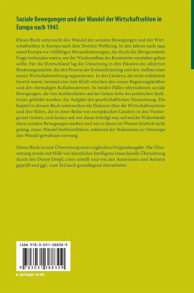 1 Soziale Bewegungen und der Wandel der wirtschaftlichen Eliten in Europa: Eine Einführung.- 2 Konfrontation oder Kooperation? Die Arbeiterbewegung und die wirtschaftlichen Eliten in Westdeutschland nach 1945.- 3 Soziale Bewegungen und der Wandel der industriellen Eliten in Ostdeutschland.- 4 Frankreich nach der Befreiung: Die Arbeiterbewegung, die Arbeitgeber und die politischen Führer in ihrer Auseinandersetzung mit der sozialen Bewegung.- 5 Soziale Bewegungen und Elitenwandel: Der belgische Fall.- 6 Die niederländische soziale Nachkriegsbewegung und die Reaktion der Eliten.- 7 Die Betriebsräte in der Tschechoslowakei, 1945-1949: Bemerkungen zum Schicksal einer sozialen Bewegung im Transformationsprozess.- 8 Der Wiederaufbau des Donbass: Die Auswirkungen der nationalsozialistischen Besatzung auf Arbeiter, Ingenieure und die wirtschaftliche Entwicklung der Nachkriegssowjetunion im Spätstalinismus.- 9 Wandel oder Kontinuität bei den dänischen Eliten? Social Movements and the Transitionfrom War to Peace in Denmark, 1945-1947.- 10 Political Radicalization and Social Movements in Liberated Norway, 1945-1947.- 11 Capitalism Under Attack: Wirtschaftseliten und soziale Bewegungen im Nachkriegsfinnland.- 12 Die schwedische Arbeiterbewegung und die Radikalisierung der Nachkriegszeit: Die Sozialdemokratie zwischen Wirtschaftseliten und Gewerkschaftsbewegung.- 13 Die Arbeiterbewegung und die Wirtschaftseliten im untergehenden Faschismus: Spanien, 1939-1951.- 14 Rettung der Sozialdemokratie? Hugh Clegg und das Nachkriegsprogramm zur Reform der britischen Arbeitsbeziehungen - zu wenig und zu spät?- 15 Fazit: Soziale Bewegungen und der Wandel der industriellen Eliten: Ein europäischer Ansatz.