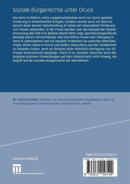 Die Hartz IV-Reform sollte Langzeitarbeitslose nicht nur durch gezielte Förderung in Erwerbsarbeit bringen, sondern wurde auch mit dem Anspruch einer aktiven Gleichstellung im Sinne der besonderen Förderung von Frauen verbunden. In der Praxis werden, wie das Beispiel der lokalen Umsetzung des SGB II im Berliner Bezirk Mitte zeigt, geschlechtsspezifische Belange jedoch vernachlässigt. Wie betroffene Frauen den Übergang in Hartz IV wahrnahmen und mit welchen Problemen sie zwischen Behördenchaos, einem Leben in Armut und (Selbst-)Ausschluss aus der Gesellschaft zu kämpfen haben, wird am Beispiel einer Mehrfach-Befragung von 30 Frauen eindrucksvoll dargelegt. Hartz IV ist, darüber täuschen auch die jüngsten positiven Entwicklungen auf dem Arbeitsmarkt nicht hinweg, ein Angriff auf die sozialen Bürgerrechte der Betroffenen.