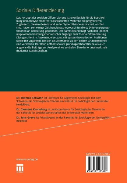 Das Konzept der sozialen Differenzierung ist unerlässlich für die Beschreibung und Analyse moderner Gesellschaften. Während die prägenderen Zugänge zu diesem Gegenstand in der Systemtheorie entwickelt worden sind, haben seit einiger Zeit handlungstheoretisch fundierte Differenzierungstheorien an Bedeutung gewonnen. Der Sammelband fragt nach dem Verhältnis, der Vereinbarkeit und den Erkenntnisgewinnen handlungs- und systemtheoretischer Zugänge zu sozialer Differenzierung sowie nach alternativen Zugängen jenseits des Gegensatzes von Handlungs- und Systemtheorie. Er enthält sowohl grundlagentheoretische als auch angewandte Beiträge zur Analyse eines zentralen Strukturierungsmerkmals moderner Gesellschaften.