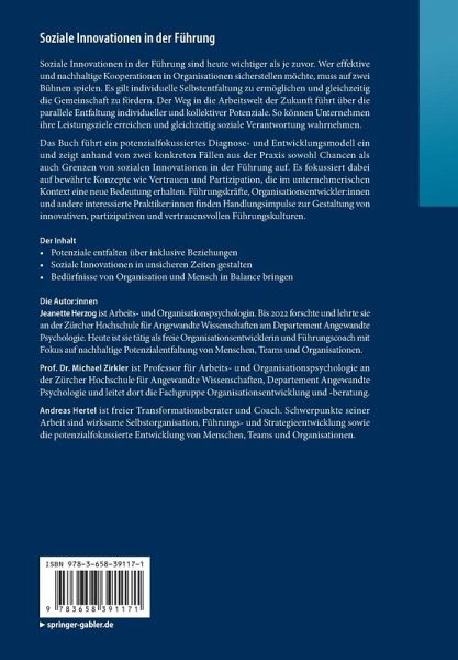 Das Buch führt ein potenzialfokussiertes Diagnose- und Entwicklungsmodell ein und zeigt anhand von zwei konkreten Fällen aus der Praxis sowohl Chancen als auch Grenzen von sozialen Innovationen in der Führung auf. Es fokussiert dabei auf bewährte Konzepte wie Vertrauen und Partizipation, die im unternehmerischen Kontext eine neue Bedeutung erhalten. Führungskräfte, Organisationsentwickler:innen und andere interessierte Praktiker:innen finden Handlungsimpulse zur Gestaltung von innovativen, partizipativen und vertrauensvollen Führungskulturen.