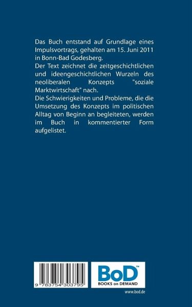 Das Buch entstand auf Grundlage eines Impulsvortrags, gehalten am 15. Juni 2011 in Bonn-Bad Godesberg.Der Text zeichnet die zeitgeschichtlichen und ideengeschichtlichen Wurzeln des neoliberalen Konzepts "soziale Marktwirtschaft" nach.Die Schwierigkeiten und Probleme, die die Umsetzung des Konzepts im politischen Alltag von Beginn an begleiteten, werden im Buch in kommentierter Form aufgelistet.