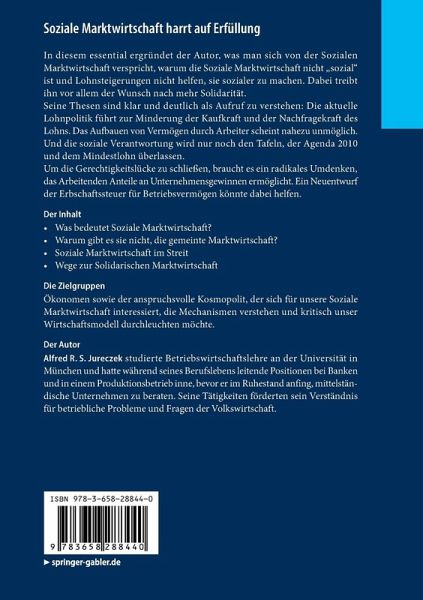 In diesem essential ergründet der Autor, was man sich von der Sozialen Marktwirtschaft verspricht, warum die Soziale Marktwirtschaft nicht "sozial" ist und Lohnsteigerungen nicht helfen, sie sozialer zu machen. Dabei treibt ihn vor allem der Wunsch nach mehr Solidarität.