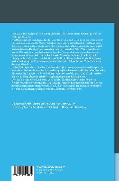 Der Band ist aus einer Konferenz zur Sozialen Nachhaltigkeit in der Region im November 2019 hervorgegangen. Die Tagung wurde in Kooperation mit der Aktionsgemeinschaft Soziale Marktwirtschaft e.V., der Gesellschaft für Sozialen Fortschritt e.V. und der Evangelischen Hochschule Darmstadt durchgeführt.