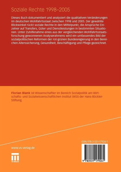 Soziale Rechte in der Wohlfahrtsstaatsforschung Soziale Rechte und Reformen im deutschen Wohlfahrtsstaat bis 1998 Handeln unter Finanzierungsdruck: Soziale Rechte in der Alterssicherungs und Rentenpolitik unter der rot grünen Koalition Rationalisierung, Qualitätssicherung und Verhaltenssteuerung: Soziale Rechte in der Gesundheitspolitik unter der rot grünen Koalition Aktivierung, aktiv und passiv: Soziale Rechte im Bereich Beschäftigung unter der rot grünen Koalition Wenig Reformen der Reform: Soziale Rechte im Bereich Pflege unter der rot grünen Koalition Diskussion: Soziale Rechte und Policy Change unter der rot grünen Koalition