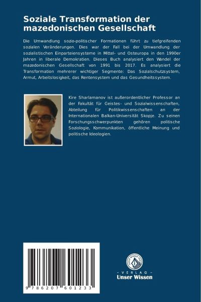 Die Umwandlung sozio-politischer Formationen führt zu tiefgreifenden sozialen Veränderungen. Dies war der Fall bei der Umwandlung der sozialistischen Einparteiensysteme in Mittel- und Osteuropa in den 1990er Jahren in liberale Demokratien. Dieses Buch analysiert den Wandel der mazedonischen Gesellschaft von 1991 bis 2017. Es analysiert die Transformation mehrerer wichtiger Segmente: Das Sozialschutzsystem, Armut, Arbeitslosigkeit, das Rentensystem und das Gesundheitssystem.