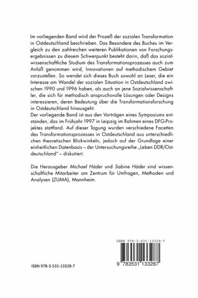 Michael Häder und Sabine Häder Dieses Buch handelt von der Bevölkerung eines Landes, die sich in freien Wahlen für die Abschaffung der ihr vertrauten Ordnung entschied und für die Übernahme eines völlig anderen Gesellschaftssystems votierte. Die Besonderheit eines solchen Vorgangs, die dabei zu bewältigenden politischen, sozialen, wirtschaftlichen, moralischen und psy chischen Probleme, die zahlreichen Fehleinschätzungen, die damit provozierten positi ven und negativen Überraschungen und schließlich die Unwägbarkeiten des Fortgangs dieses relativ spontan vollzogenen Anschlusses eines Staates an einen anderen bieten eine umfangreiche und interessante Stoffülle. Mit Hilfe der Auswertung empirischer Daten und unter Bezugnahme auf sozialwissenschaftliche Theorien soll versucht wer den, diesen Prozeß zu beschreiben, um ihn schließlich besser verstehen zu können. Das Besondere dieses Buches im Vergleich zu den zahlreichen weiteren Publikatio nen von Forschungsergebnissen über den sozialen Wandel in Ostdeutschland besteht darin, daß hier das sozialwissenschaftliche Studium des Transformationsprozesses auch 1 zum Anlaß genommen wird, um Innovationen auf methodischem Gebiet vorzustellen - So wendet sich dieses Buch sowohl an Leser, die ein Interesse am Wandel der sozialen Situation in Ostdeutschland zwischen 1990 und 1996 haben, als auch an jene Sozialwis senschaftler, die sich für methodisch anspruchsvolle Lösungen oder Designs interessie ren, deren Bedeutung über die Transformationsforschung in Ostdeutschland hinausgeht.