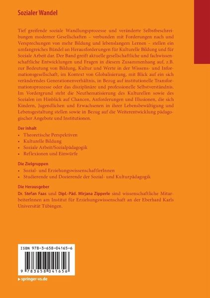 Tief greifende soziale Wandlungsprozesse und veränderte Selbstbeschreibungen moderner Gesellschaften - verbunden mit Forderungen nach und Versprechungen von mehr Bildung und lebenslangem Lernen - stellen ein umfangreiches Bündel an Herausforderungen für Kulturelle Bildung und für Soziale Arbeit dar. Der Band greift aktuelle gesellschaftliche und fachwissenschaftliche Entwicklungen und Fragen in diesem Zusammenhang auf, z.B. zur Bedeutung von Bildung, Kultur und Werte in der Wissens- und Informationsgesellschaft, im Kontext von Globalisierung, mit Blick auf ein sich veränderndes Generationenverhältnis, in Bezug auf institutionelle Transformationsprozesse oder das disziplinäre und professionelle Selbstverständnis. Im Vordergrund steht die Neuthematisierung des Kulturellen sowie des Sozialen im Hinblick auf Chancen, Anforderungen und Illusionen, die sich Kindern, Jugendlichen und Erwachsenen in ihrer Lebensbewältigung und Lebensgestaltung stellen sowie in Bezug auf die Weiterentwicklung pädagogischer Angebote und Institutionen.