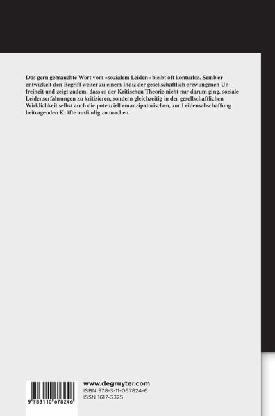 Heute bleibt die Vorstellung von "sozialem Leiden" als Indiz der gesellschaftlich erzwungenen Unfreiheit begrifflich und normativ oft konturlos. Aus diesem Grund analysiert Sembler den Begriff mit Bezug auf die Grundprämissen der Kritischen Theorie. Er entwickelt die These, dass es sich für diese Tradition nicht nur darum handelt, soziale Leidenserfahrungen zu kritisieren, sondern gleichzeitig in der gesellschaftlichen Wirklichkeit selbst auch die potenziell emanzipatorischen, zur Leidensabschaffung beitragenden Kräfte ausfindig zu machen. Er zeigt anhand einer Diskussion materialistischer sowie anerkennungstheoretischer Leidenskritik, dass sich diese These auf die sozialontologische Prämisse Hegels zurückführen lässt, derzufolge die Struktur von sozialen Lebensformen als eine freiheitsermöglichende zweite Natur beschrieben werden kann. Somit lässt sich für heute Debatten die wichtige Schlussfolgerung ziehen, dass in soziale Leidenserfahrungen nicht weniger als die Freiheit von Subjekten auf dem Spiel steht.