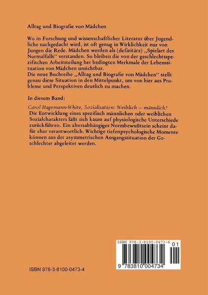 Inhaltsübersicht.- I. Sind geschlechtsspezifisch unterschiedliche Charaktere empirisch nachweisbar?.- 1. Zur Geschichte der Erforschung von Geschlechtsunterschieden.- 2. Stand der empirischen Forschung über Unterschiede im Verhalten der Geschlechter in der Kindheit und Pubertät.- 3. Zur Relevanz der Biologie bei der Erklärung von geschlechtstypischem Verhalten.- 4. Einschätzung der Bedeutung der vorliegenden Ergebnisse.- II. Mittel, Wege und Wirkungen geschlechtsspezifischer Erziehung.- 1. Erziehung in der Familie.- 2. Erziehung in öffentlichen Einrichtungen.- III. Ansätze zu einer Theorie der Entwicklung des weiblichen Sozialcharakters.- 1. Das Problem einer zureichenden Theorie der Weiblichkeit.- 2. Die Zweigeschlechtlichkeit als kulturelles System und der Biologismus des Alltags.- 3. Von der Ohnmacht der Frauen und der Allmacht der Mütter.- 4. Der männliche und der weibliche Ort: Strukturunterschiede in der An-eignung der Zweigeschlechtlichkeit.- 5. Pubertät und widersprüchliche Lebensentwürfe.- Anmerkungen.