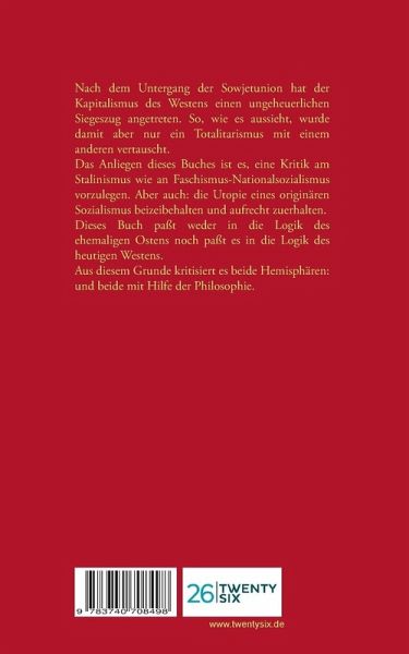 Nach dem Untergang der Sowjetunion hat der Kapitalismus des Westens einen ungeheuerlichen Siegeszug angetreten. So, wie es aussieht, wurde damit aber nur ein Totalitarismus mit einem anderen vertauscht. Das Anliegen dieses Buches ist es, eine Kritik am Stalinismus wie an Faschismus-Nationalsozialismus vorzulegen. Aber auch: die Utopie eines originären Sozialismus beizeibehalten und aufrecht zu erhalten.Dieses Buch passt weder in die Logik des ehemaligen Ostens noch passt es in die Logik des heutigen Westens. Aus diesem Grunde kritisiert es beide Hemisphären: und beide mit Hilfe der Philosophie.