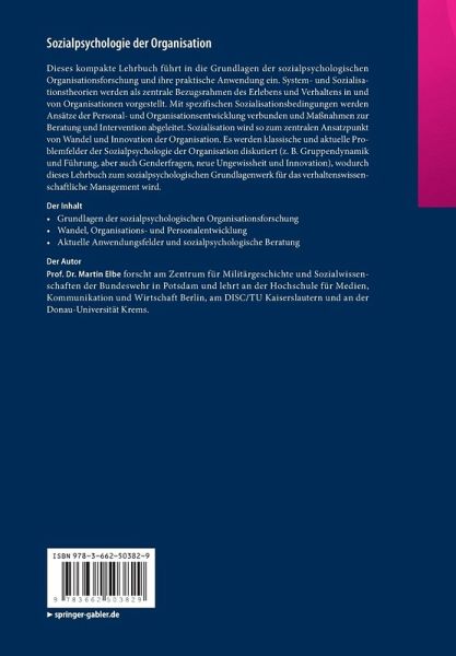 Dieses kompakte Lehrbuch führt in die Grundlagen der sozialpsychologischen Organisationsforschung und ihre praktische Anwendung ein. System- und Sozialisationstheorien werden als zentrale Bezugsrahmen des Erlebens und Verhaltens in und von Organisationen vorgestellt. Mit spezifischen Sozialisationsbedingungen werden Ansätze der Personal- und Organisationsentwicklung verbunden und Maßnahmen zur Beratung und Intervention abgeleitet. Sozialisation wird so zum zentralen Ansatzpunkt von Wandel und Innovation der Organisation. Es werden klassische und aktuelle Problemfelder der Sozialpsychologie der Organisation diskutiert (z. B. Gruppendynamik und Führung, aber auch Genderfragen, neue Ungewissheit und Innovation), wodurch dieses Lehrbuch zum sozialpsychologischen Grundlagenwerk für das verhaltenswissenschaftliche Management wird.