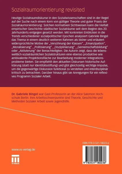 Mit konkreten Einblicken in die Trends verschiedener sozialpolitischer Epochen analysiert Gabriele Bingel das Thema in einem deutlich weiteren Rahmen als bisher und erläutert widersprüchliche Motive der 'Versöhnung der Klassen', 'Emanzipation', 'Moralisierung', 'Politisierung', 'Disziplinierung'' 'Gemeinschaftsbildung' oder 'Aktivierung' der Benachteiligten. Die Autorin zeigt, dass die lebensweltlich-sozialräumlichen Sozialstrukturen eine ebenso produktive wie ambivalente Projektionsfläche zur Bearbeitung moderner Integrationsprobleme bieten. Sie empfiehlt den aktuellen Diskursen historische Aufklärung (statt nur Identitätsstiftung) und gibt gleichzeitig wichtige Impulse, um die gegenwärtige Diskussion funktional zu verstehen und interdisziplinär kritisch zu betrachten. Darüber hinaus gibt sie Anregungen für ein reflexives Programm Sozialer Arbeit.