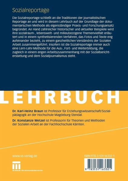 "Braun und Wetzel haben mit 'Sozialreportage' eine Veröffentlichung vorgelegt, die die Selbstverständigung der Sozialen Arbeit insbesondere im Blick auf (besser) verstehende Zugänge bereichern kann. Der Band ist illustrativ gestaltet, verständlich aufbereitet und regt zum auch zum 'Ausprobieren' an." www.socialnet.de, 18.08.2010