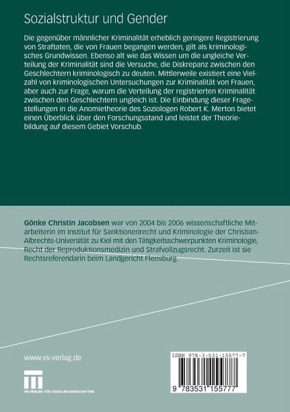 Die gegenüber männlicher Kriminalität erheblich geringere Registrierung von Straftaten, die von Frauen begangen werden, gilt als kriminologisches Grundwissen. Ebenso alt wie das Wissen um die ungleiche Verteilung der Kriminalität sind die Versuche, die Diskrepanz zwischen den Geschlechtern kriminologisch zu deuten. Mittlerweile existiert eine Vielzahl von kriminologischen Untersuchungen zur Kriminalität von Frauen, aber auch zur Frage, warum die Verteilung der registrierten Kriminalität zwischen den Geschlechtern ungleich ist. Die Einbindung dieser Fragestellungen in die Anomietheorie des Soziologen Robert K. Merton bietet einen Überblick über den Forschungsstand und leistet der Theoriebildung auf diesem Gebiet Vorschub.