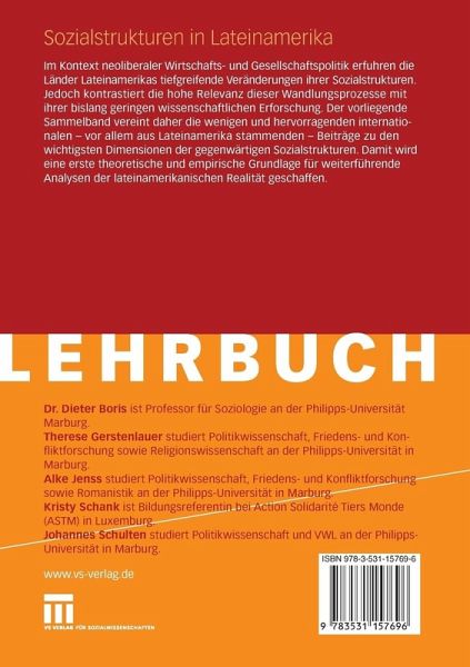 Im Kontext neoliberaler Wirtschafts- und Gesellschaftspolitik erfuhren die Länder Lateinamerikas tiefgreifende Veränderungen ihrer Sozialstrukturen. Jedoch kontrastiert die hohe Relevanz dieser Wandlungsprozesse mit ihrer bislang geringen wissenschaftlichen Erforschung. Der vorliegende Sammelband vereint daher die wenigen und hervorragenden internationalen - vor allem aus Lateinamerika stammenden - Beiträge zu den wichtigsten Dimensionen der gegenwärtigen Sozialstrukturen. Damit wird eine erste theoretische und empirische Grundlage für weiterführende Analysen der lateinamerikanischen Realität geschaffen.