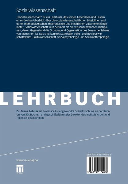 "Sozialwissenschaft" ist ein Lehrbuch, das seinen Leserinnen und Lesern einen breiten Überblick über die sozialwissenschaftlichen Disziplinen und methodologische, theoretische und inhaltliche Zusammenhänge bietet. Sozialwissenschaft wird definiert als die wissenschaftlichen Disziplinen, deren Gegenstand die Ordnung und Organisation des Zusammenlebens von Menschen ist. Das sind konkret Soziologie, Volks- und Betriebswirtschaftslehre, Politikwissenschaft, Sozialpsychologie und Sozialanthropologie.