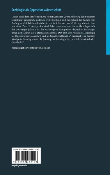 Dieser Band der Schriften ist René Königs Arbeiten "Zur Entfaltung der modernen Soziologie" gewidmet, in denen er die Stellung und Bedeutung des Faches vom Anfang des 20. Jahrhunderts bis in die Zeit des zweiten Weltkrieges hinein thematisiert. Zwei Schwerpunkte sind dabei auszumachen, die Aufbruchsperiode der zwanziger Jahre und die erzwungene Emigration deutscher Soziologen unter dem Diktat des Nationalsozialismus. Der Titel des Aufsatzes "Soziologie als Oppositionswissenschaft und als Gesellschaftskritik" markiert sehr deutlich Königs Auffassung von der Bedeutung der Soziologie in einer sich entwickelnden Gesellschaft.