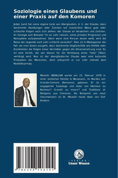 Jedes Land hat seine eigene Liste von Aberglauben, d. h. der Glaube, dass bestimmte Handlungen oder Zeichen auf mysteriöse Weise gute oder schlechte Folgen nach sich ziehen; der Glaube an Vorzeichen und Zeichen. Im Senegal zum Beispiel "ist es sehr ratsam, seine privaten Prognosen und Reisepläne aufzubewahren. Denn wenn eine Person davon weiß, wird die Reise der Legende nach sehr schlecht verlaufen". Dies ist in Madagaskar der Fall, wo man davon ausgeht, dass bestimmte Unglücksfälle wie Unfälle oder Krankheiten die Folgen eines Verstoßes gegen die Ahnenverehrung sind. Es ist eine Strafe, die von diesen für die Verletzung eines "fady" (Tabu) verhängt wird. Nun ist der abergläubische Glaube zwar eine kulturelle Produktion der Menschen, doch entspricht er nur sehr indirekt dem Realitätsprinzip.