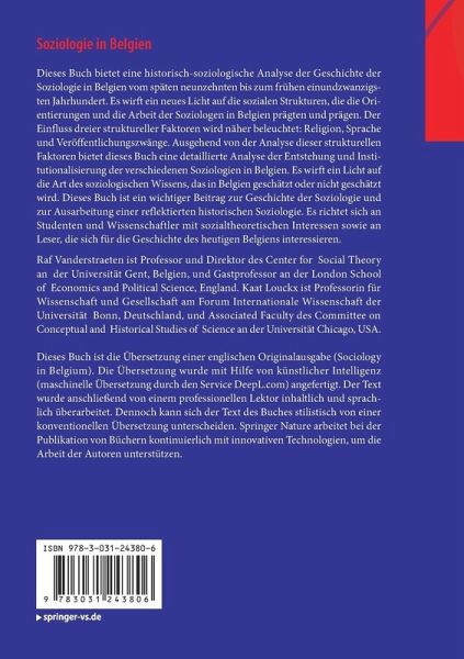 Dieses Buch bietet eine historisch-soziologische Analyse der Geschichte der Soziologie in Belgien vom späten neunzehnten bis zum frühen einundzwanzigsten Jahrhundert. Es wirft ein neues Licht auf die sozialen Strukturen, die die Orientierungen und die Arbeit der Soziologen in Belgien prägten und prägen. Der Einfluss von drei strukturellen Faktoren wird näher beleuchtet: Religion, Sprache und Publikationszwänge. Ausgehend von der Analyse dieser strukturellen Faktoren bietet dieses Buch eine detaillierte Analyse der Entstehung und Institutionalisierung der verschiedenen Soziologien in Belgien und leistet einen wichtigen Beitrag zur Geschichte der Soziologie und zur Entwicklung einer reflektierten historischen Soziologie. Es richtet sich an Studenten und Wissenschaftler der Sozialtheorie sowie an Leser, die sich für die Geschichte des heutigen Belgiens interessieren.
