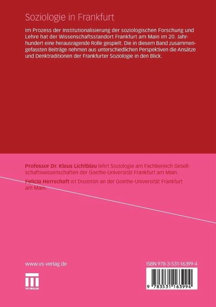 Im Prozess der Institutionalisierung der soziologischen Forschung und Lehre hat der Wissenschaftsstandort Frankfurt am Main im 20. Jahrhundert eine herausragende Rolle gespielt. Die in diesem Band zusammengefassten Beiträge nehmen aus unterschiedlichen Perspektiven die Ansätze und Denktraditionen der Frankfurter Soziologie in den Blick.