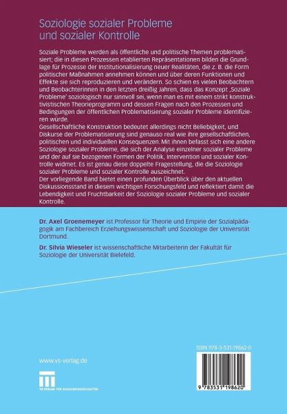 Soziale Probleme werden als öffentliche und politische Themen problematisiert; die in diesen Prozessen etablierten Repräsentationen bilden die Grundlage für Prozesse der Institutionalisierung neuer Realitäten, die z. B. die Form politischer Maßnahmen annehmen können und über deren Funktionen und Effekte sie sich reproduzieren und verändern. So schien es vielen Beobachtern und Beobachterinnen in den letzten dreißig Jahren, dass das Konzept 'Soziale Probleme' soziologisch nur Sinn machen könne, wenn man es mit einem strikt konstruktivistischen Theorieprogramm und dessen Fragen nach der Prozessen und Bedingungen der öffentlichen Problemati-sierung sozialer Probleme identifizieren würde. Dieses Forschungsprogramm hat sich in den letzten Jahren zu einem fruchtbaren Feld theoretischer und empirischer Forschung entwickelt. Gesellschaftliche Konstruktion bedeutet allerdings nicht Beliebigkeit und Diskurse der Problematisierung sind genauso real wie ihre gesellschaftlichen, politischen und individuellen Konsequenzen. Mit ihnen befasst sich eine andere Soziologie sozialer Probleme, die sich der Analyse einzelner sozialer Probleme und der auf sie bezogenen Formen der Politik, Intervention und sozialer Kontrolle widmet. Es ist genau diese doppelte Fragestellung, die die Soziologie sozialer Probleme und sozialer Kontrolle auszeichnet.Der vorliegende Band bietet einen profunden Überblick über den aktuellen Diskussionsstand in diesem wichti-gen Forschungsfeld und reflektiert damit die Lebendigkeit und Fruchtbarkeit der Soziologie sozialer Probleme und sozialer Kontrolle.