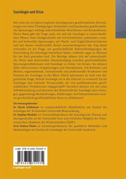Seit mehr als 100 Jahren begleiten Soziolog_innen gesellschaftliche Entwicklungen mit ihren Überlegungen, beobachten und beschreiben gesellschaftliche Spannungen entlang unterschiedlicher Bruchlinien und Konjunkturen. Dieser Band geht der Frage nach, wie sich die Soziologie in unterschiedlichen Phasen ihrer Fachgeschichte mit wirtschaftlichen, politischen, sozialen und kulturellen Spannungen, mit Macht- und Ungleichheitsstrukturen und mit daraus resultierenden Krisen auseinandergesetzt hat. Eng damit verbunden ist die Frage, wie gesellschaftliche Rahmenbedingungen die Entwicklung der Soziologie beeinflusst haben, vielleicht sogar zu Motoren für das Fach geworden sind. Die Beiträge nähern sich auf unterschiedliche Weise dem historischen Zusammenhang zwischen gesellschaftlichen Spannungsverhältnissen und Soziologie in Zeiten von Krisen. Sie nehmen dabei Akteur_innen, Gruppierungen und Interaktionen, Sub-Kulturen und Milieus, organisationale, institutionelle und professionelle Strukturenund Prozesse der Soziologie in den Blick. Damit adressieren sie auch eine diagnostische Frage: Welche Soziologie ist in der Zukunft zu erwarten? Ist die Soziologie eine kritische Wissenschaft, die sich problematischen gesellschaftlichen Verhältnissen entgegenstellt? Inwiefern können wir mit einer Selbstbetrachtung und Kenntnis der Historizität der Soziologie dazu beitragen, gegenwärtige Beobachtungen, Erklärungen und Interpretationen unseres geschichtlich-gesellschaftlichen Seins zu reflektieren?